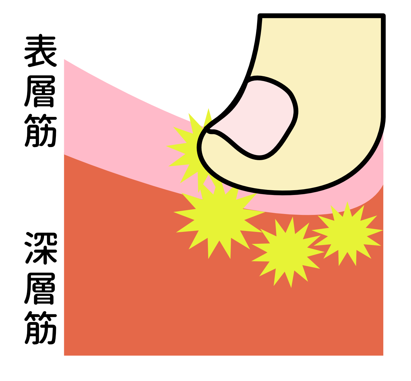 こうなると残念ながら、筋肉をほぐすマッサージ機や手もみ程度では改善できないんです・・・